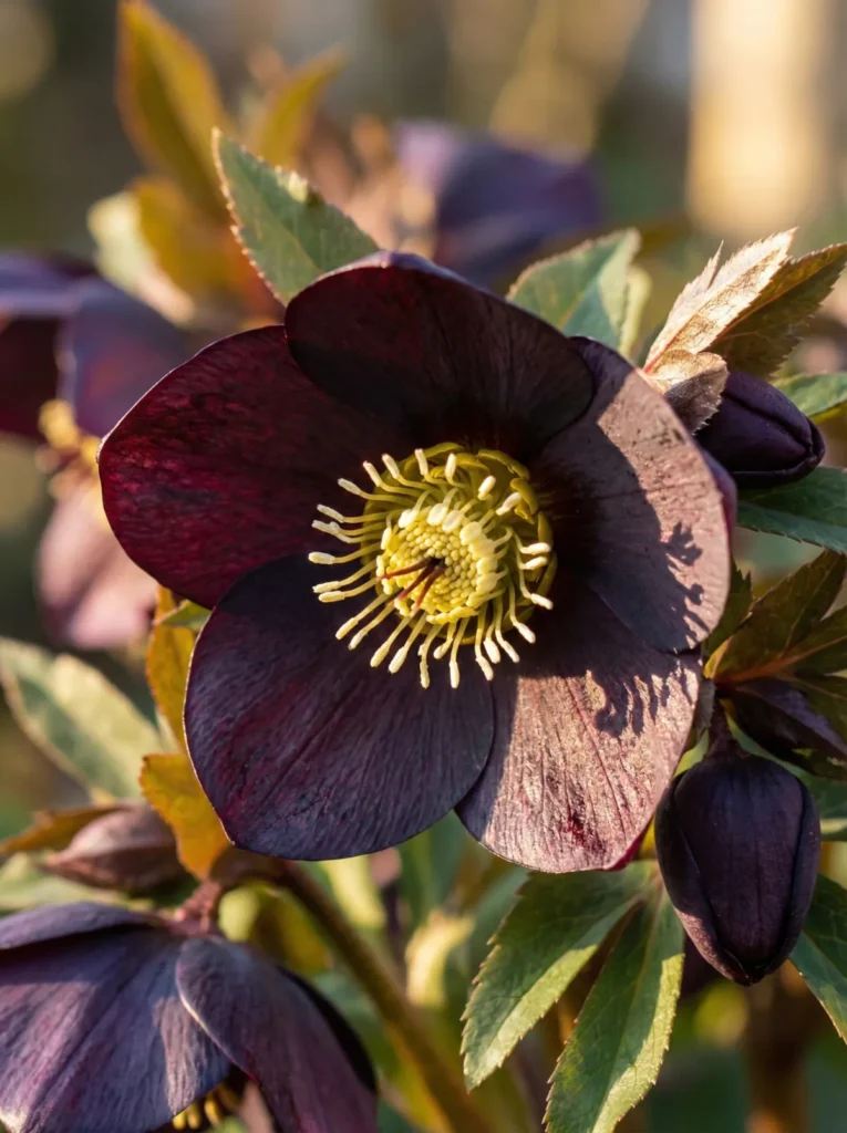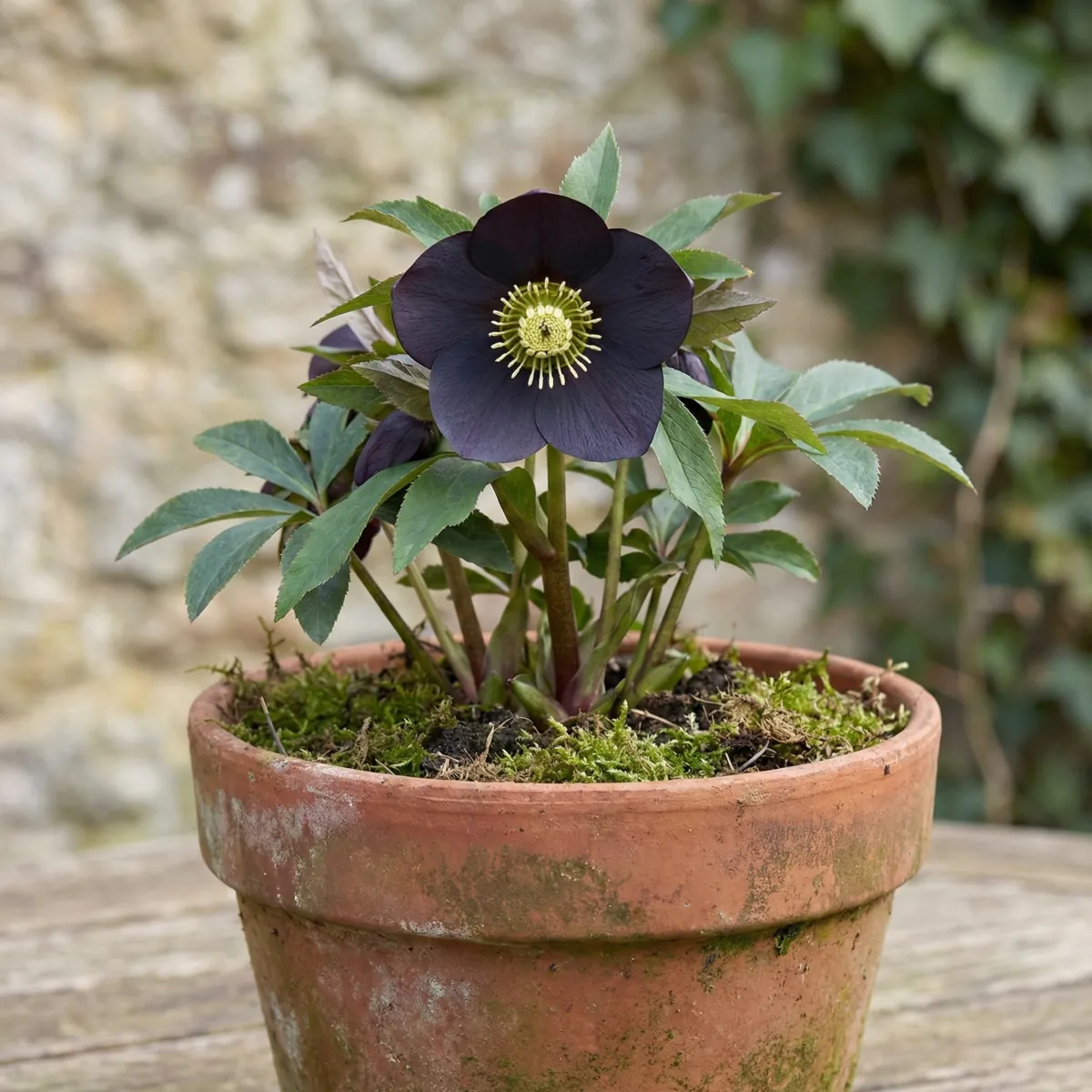 Symbole de puissance et d’élégance, la variété ‘Black’ offre des fleurs d’un noir profond et velouté. Sa floraison s’étale du cœur de l’hiver à l’aube du printemps, apportant une touche insolite dans les scènes hivernales. Marc, notre passionné, l’associe à des fougères et à des hamamélis pour accentuer la magie sombre de ses massifs.
