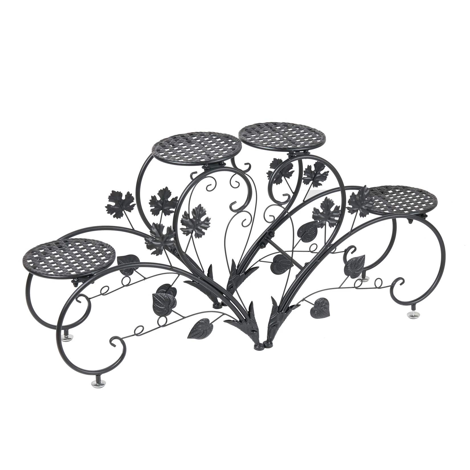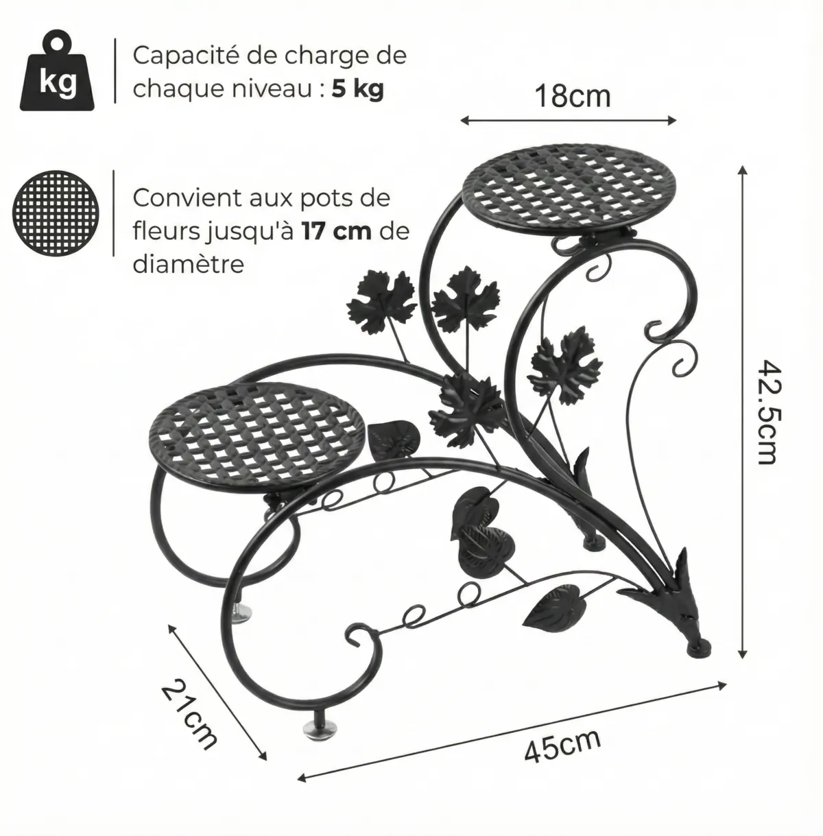 Sublimez votre jardin ou terrasse avec ce porte plante décoratif au design artistique unique en forme d’arbre fleuri. Cette sculpture végétale en fer forgé noir combine 4 plateaux ronds élégants avec décors de feuilles d’érable, fleurs délicates et volutes gracieuses pour créer une véritable œuvre d’art fonctionnelle. Les branches organiques se déploient harmonieusement en courbes douces, évoquant poésie et romantisme des jardins à la française. Avec ses dimensions compactes (45x20x42,5cm), ce porte-plantes s’intègre facilement dans tous les espaces extérieurs – pelouse, terrasse, balcon, entrée – sans encombrer. Les 4 plateaux ronds en grille métal (Ø18cm) accueillent pots de fleurs jusqu’à Ø17cm pour composition florale spectaculaire à 4 niveaux. Chaque plateau supporte 5kg, permettant pots céramique moyens sans problème. La finition fer noir mat résiste aux intempéries pour usage extérieur permanent. Particularité unique : structure en 2 blocs modulables pouvant s’assembler en composition centrale ou se séparer en 2 présentoirs indépendants pour flexibilité maximale !